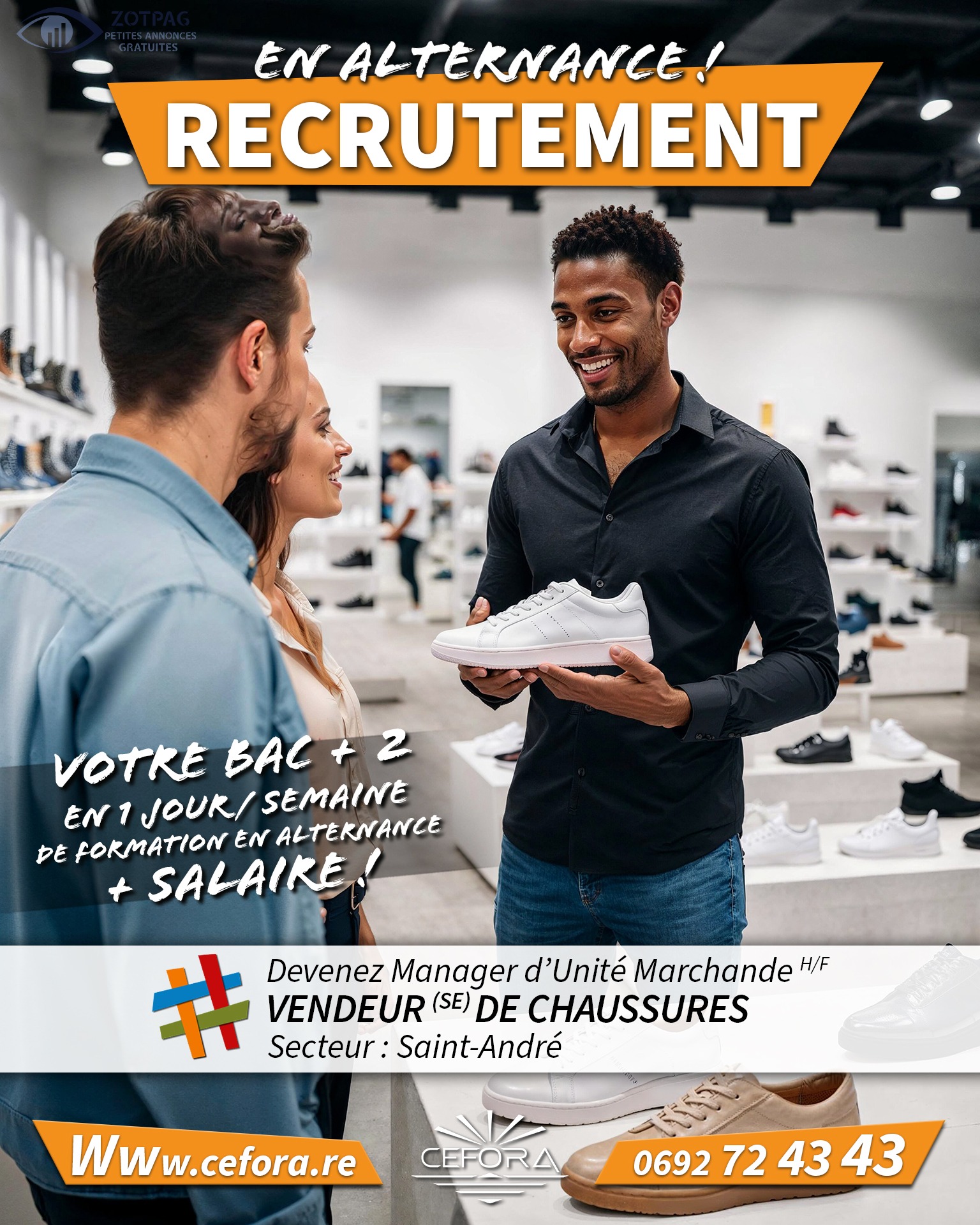 Formulaire d’inscription : https://cefora.re/emplois/emploi-vendeur-chaussures-alternance-saint-andre