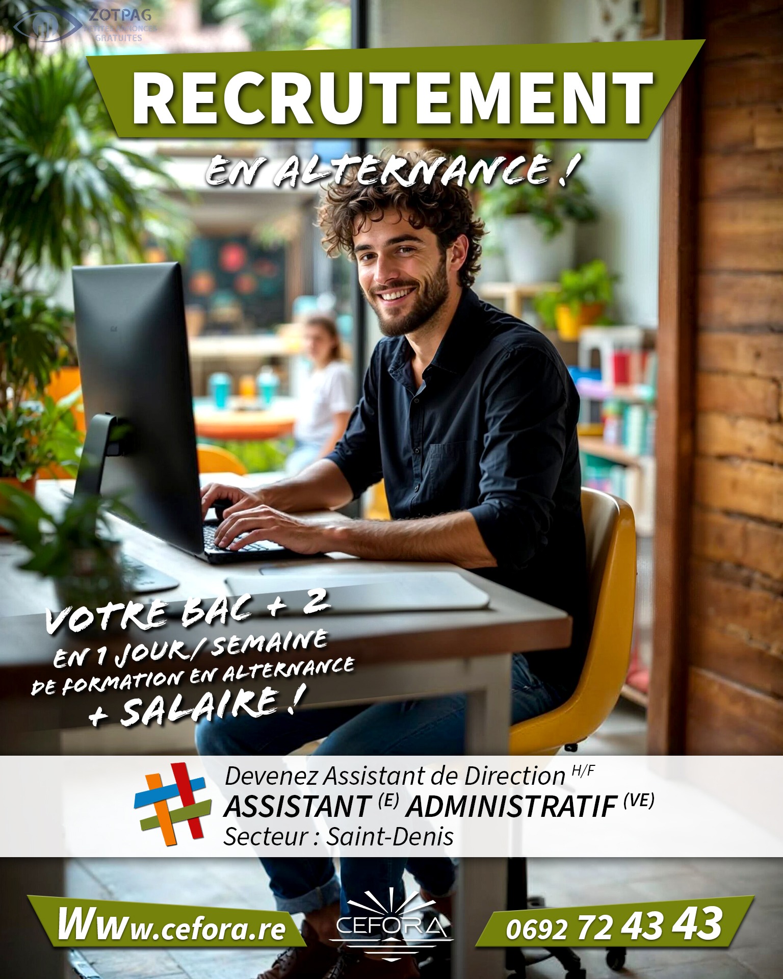 Formulaire d’inscription : https://cefora.re/emplois/emploi-assistant-administratif-alternance-2