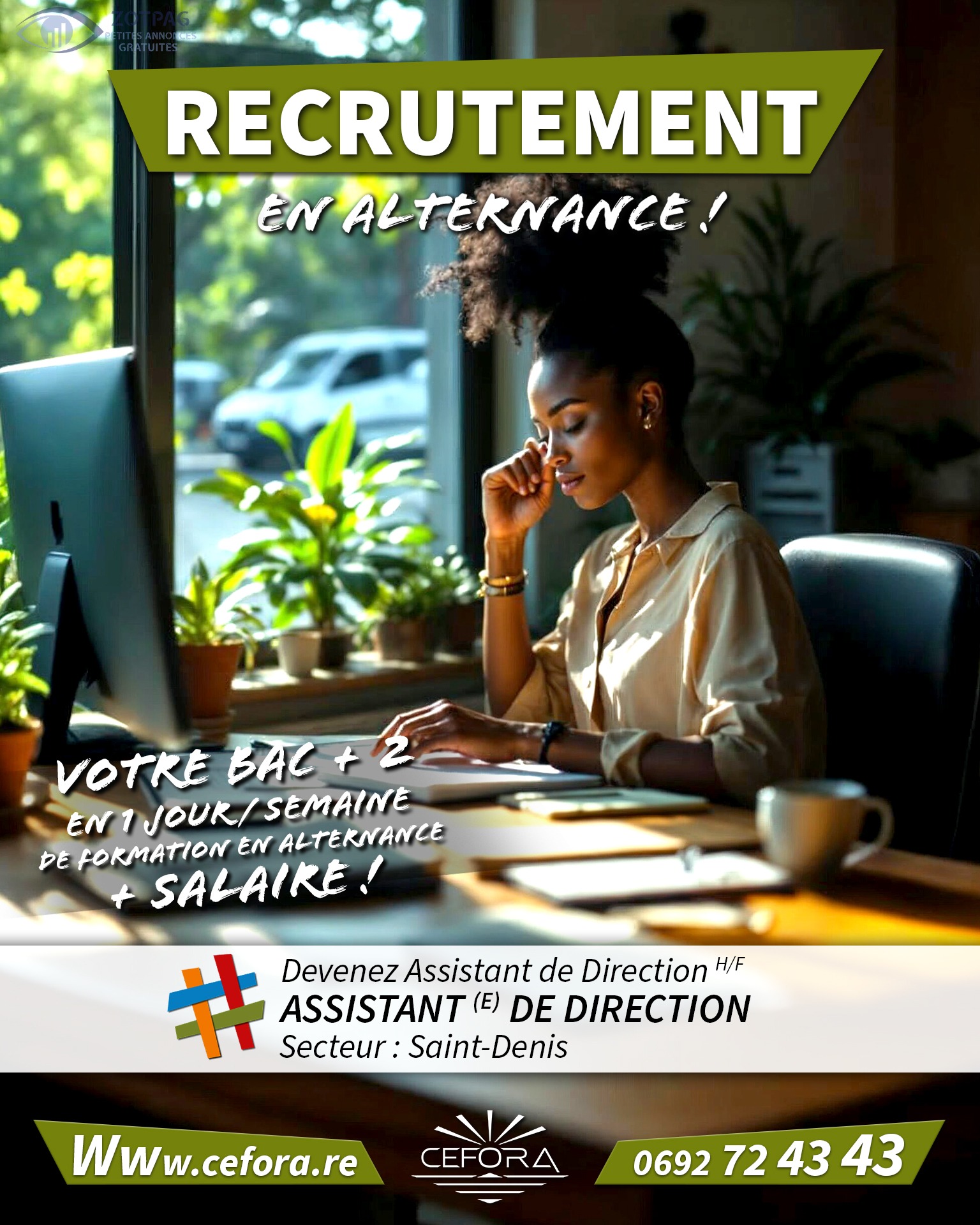 Formulaire d’inscription : https://cefora.re/emplois/emploi-assistant-direction-alternance
