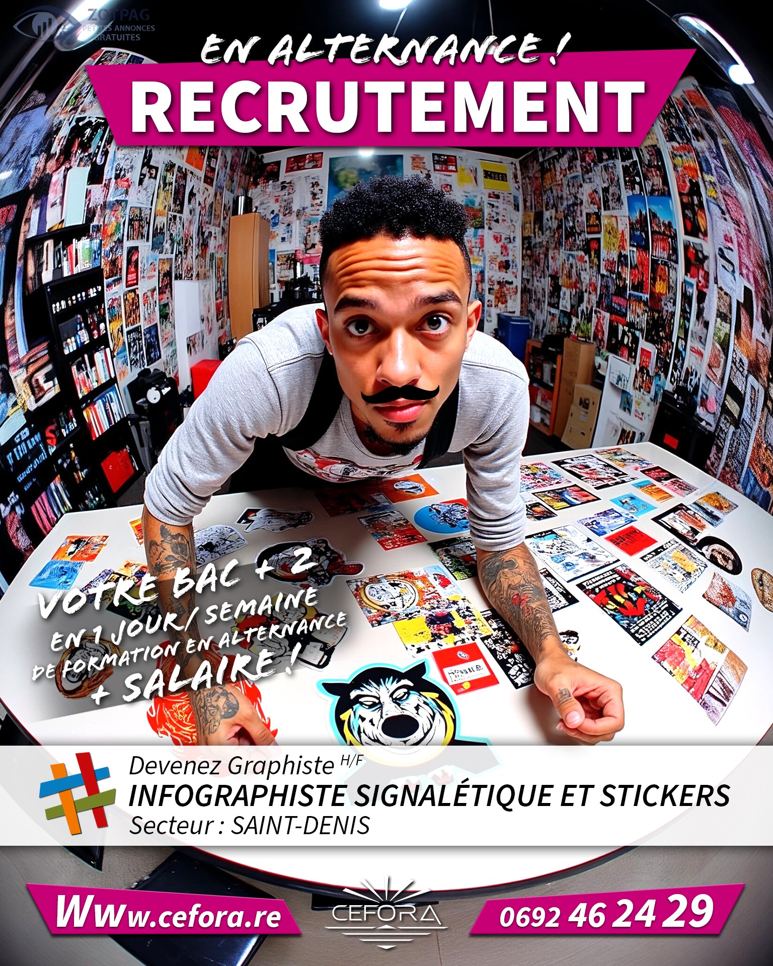 Formulaire d’inscription : https://cefora.re/emplois/emploi-infographiste-signaletique-stickers-alternance