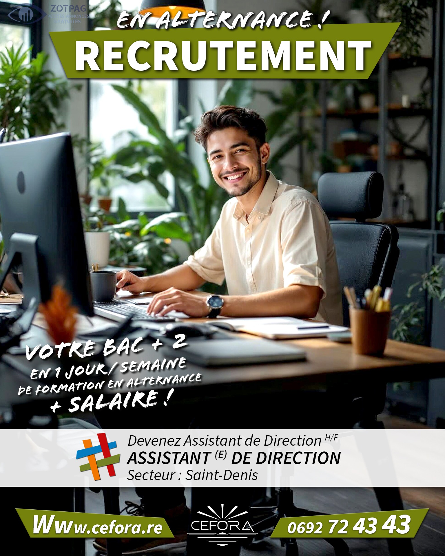 Ce poste est proposé en alternance avec un Titre professionnel d’Assistant de Direction de niveau 5 au centre de formation CEFORA.