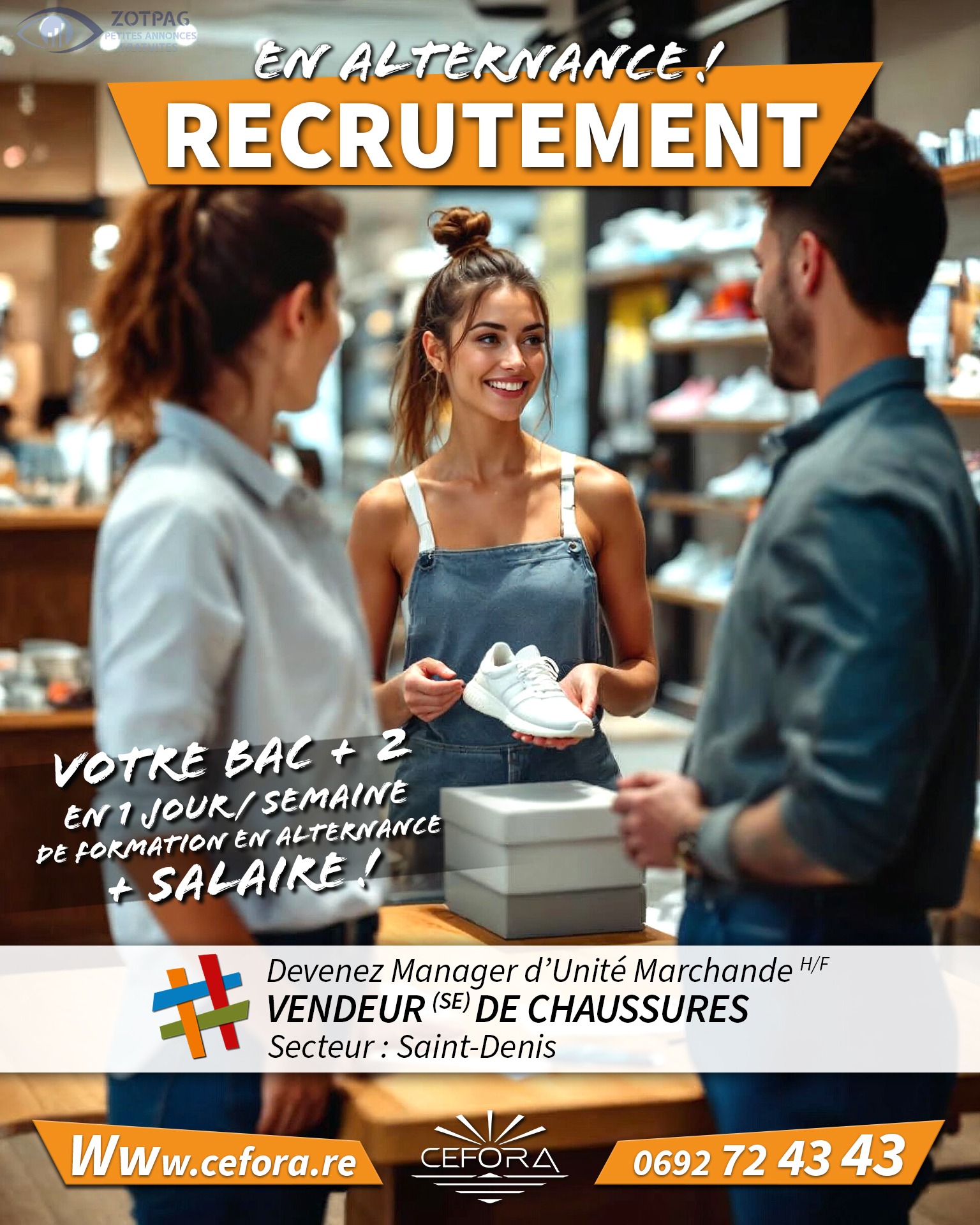 Formulaire d’inscription : https://cefora.re/emplois/emploi-vendeur-chaussures-alternance